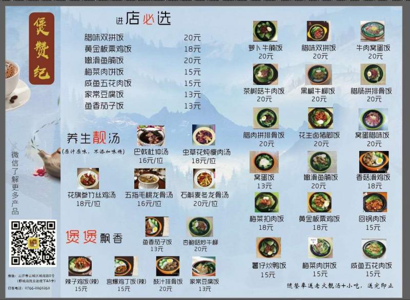 《煲赞记》星期五特价 萝卜牛腩饭¥13.8元,鱼香茄子饭¥9.9元,健康养生炖汤¥13.8元,免费赠送:红萝卜玉米骨头汤+小吃,咁抵食,还不赶快来[勾引]特价仅限堂食,打包按原价收取!本店地址:云浮市云城区城南路8号(即城南凯乐迪楼下A5卡)电话 :8868263