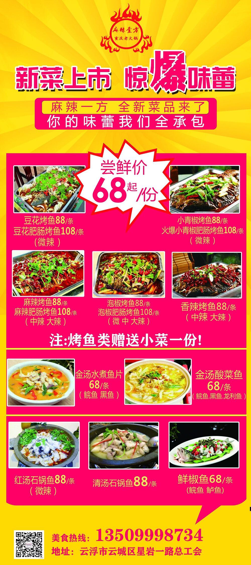 麻辣一方 新菜上市 惊爆味蕾 香气爆棚烤鱼仅需68元 五种口味任君选择