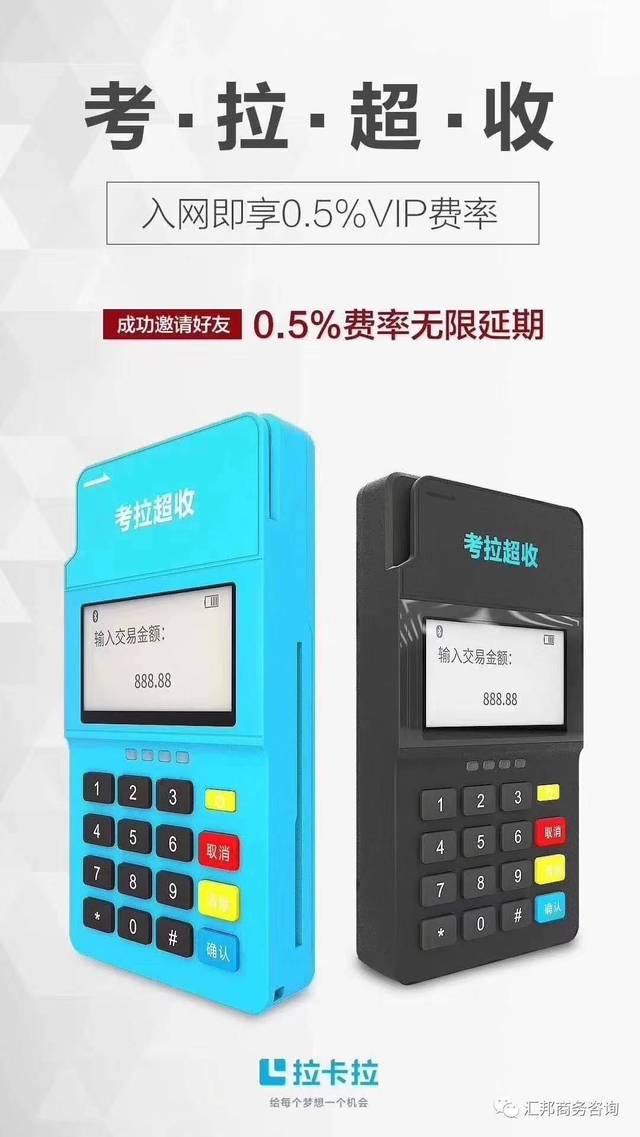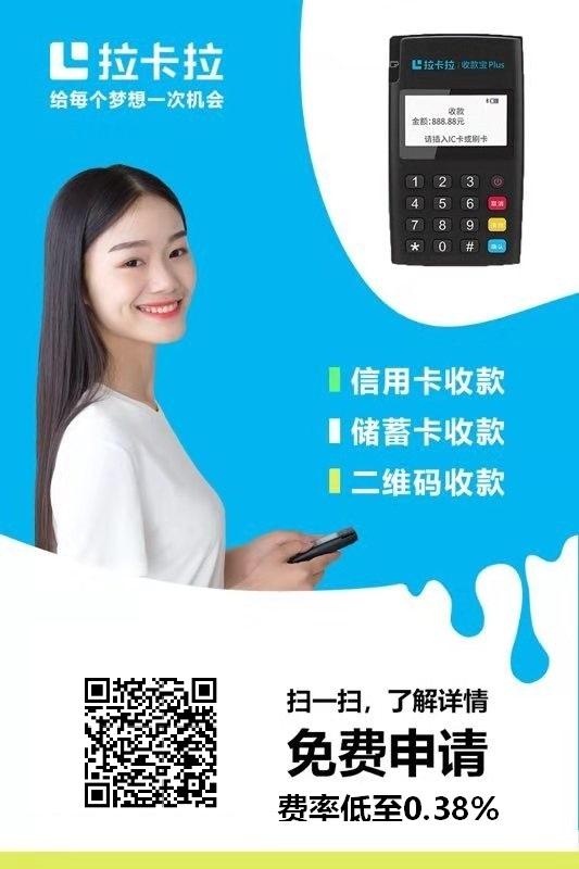 拉卡拉是全国唯一一家第三方支付上市公司,最新重磅推出POS机3.0版考拉超收,费率低至0.38,现限时免费领取。