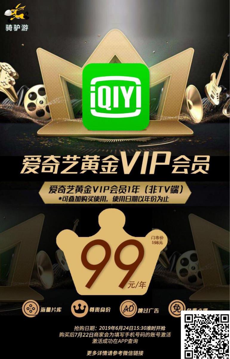 【全国】爱奇艺黄金VIP,无需等广告~不用担心剧透!99元抢爱奇艺黄金VIP会 ...