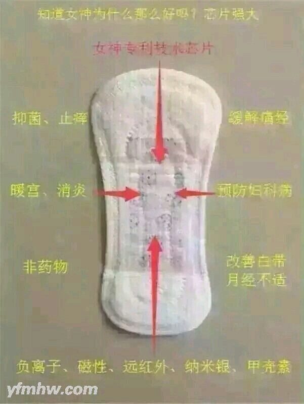 女神卫生巾是一款功效型的卫生巾,质地柔软,很亲肤,主要是可以改善痛经,去除异味,瘙痒,白带异常,有效的帮你减少妇科炎症的增生。这样方便卫生,不会在使用的时候受感染,不侧漏不回渗,吸水性强,透气性好,而且芯片上有能量调节气血循环,还有助于清洁子宫内的垃圾,让你健健康康的做美丽女人!